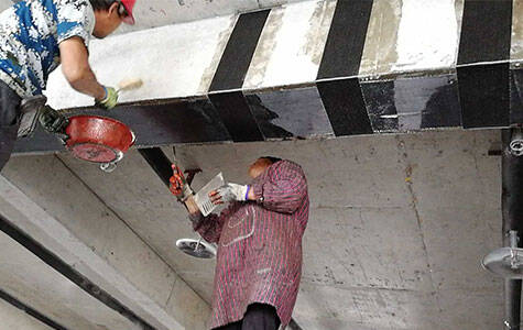 2018-10-18 16:56:34The workers use epoxy glue to paste thin CFRP plate onto the beams and then brush a layer of epoxy glue to reinforce them. It is estimated that the life span of the bridge after construction can reach about 50 years.